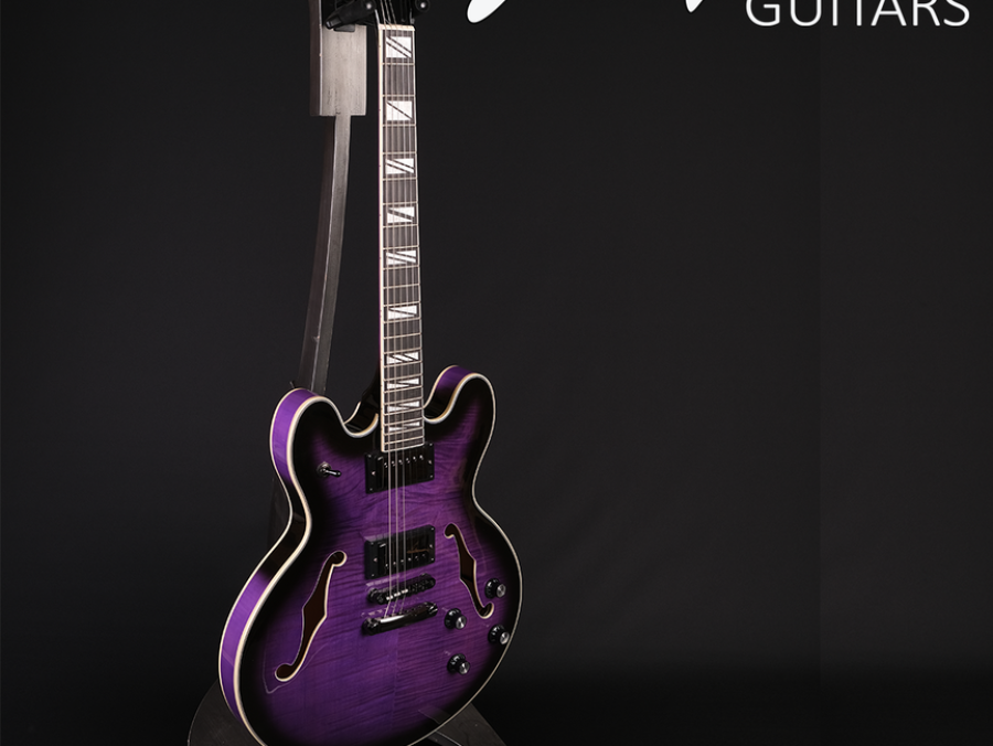 Une version moderne de la classique ES335, accastillage noir, finition gloss purple burst. Un look d’enfer et le son du rock n roll Prix : 350€ TTC